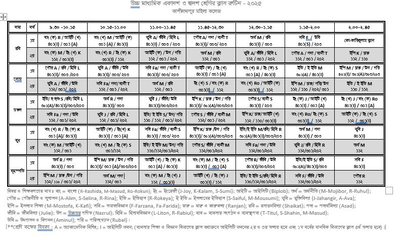 পাঠ্যক্রম ও ক্যালেন্ডার